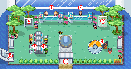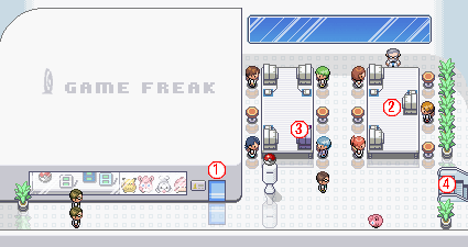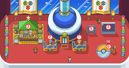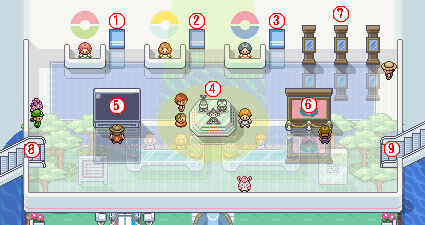 4.最初的寶可夢們:可觀看新奧(暫)一開始可以選的三隻寶可夢及其進化的資料。另外和右邊的人說話就可以投票給該三隻中最喜歡的一隻。