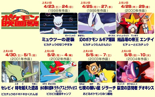 在寶可夢遊樂園附近一家叫109 CINEMAS名古屋的電影院裡,為了紀念遊樂園開放成功而舉辦「寶可夢電影祭」,將在4月23日~5月10日盛大播映歷年七部的寶可夢壯觀電影(&短篇)