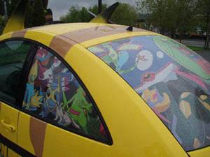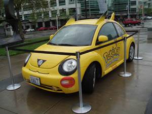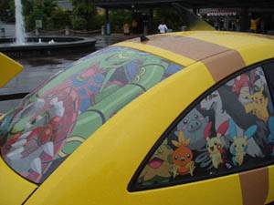 一眼就在門口看到皮卡丘和火稚雞的招呼,外面也停著那傳說中的皮卡丘金龜車