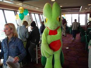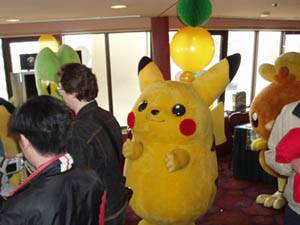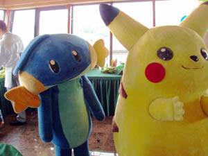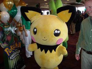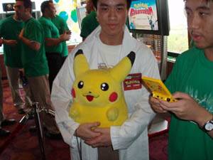 這場比賽是炒熱寶可夢綠寶石在美國5月1日發售而舉辦的 老鯊雖然沒有參賽權,但靠著流氓霸氣,不,是熱情元氣,順利潛入會場進行突擊報導 你們就往下看看當天充滿綠寶石元氣的盛況吧! (將滑鼠指標放在寶貝球上一會兒就顯示照片) |