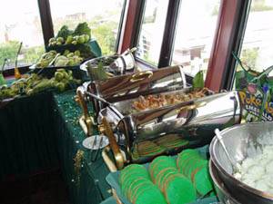 點心是楊桃芭樂等偏綠系水果、綠色餅乾、綠茶冰淇淋和綠色檸檬潘趣雞尾酒