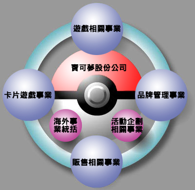 寶可夢公司 品牌環節示意圖 雖然這張圖是敘述著2006年以前的概況 距今有了10多年的歷史,多多少少一定都有改革與變動 不過營運與事業處理相關是差不多的