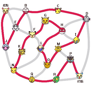 先注意優先路線(如從起點一定要先走到J不可),之後配合必經之路(如R-P)再稍加調整中間路線就可以囉