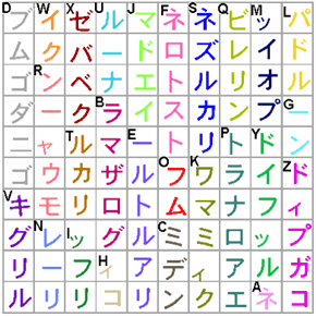 可以先從只出現一次的字,例如「ニャルマー」的「ニ、ャ」開始拼起,就可以立即對照上下方的名字來判別是哪隻神奇寶貝了。由於名單中的名字重複性不高,很快就能完成啦!(右下圖以不同字體凸顯各個名字)