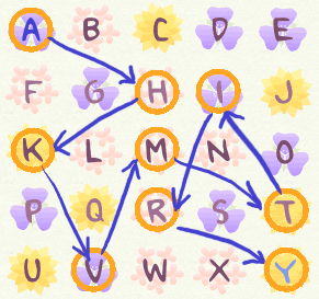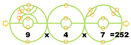 這關的關鍵是利用乘法,因為第一個寶貝球有9種走法到中間的寶貝球(見橘圓標示),而中間有4種走法,最後一個寶貝球則有7種走法,全部乘起來就有252種走法囉