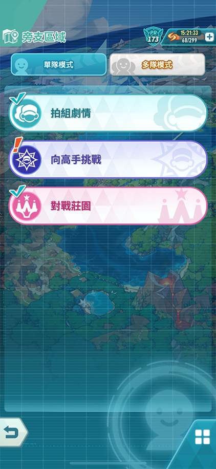 2023年10月底後的更新,把原本單純的拍組劇情再次分類,歸到旁之區域裡 2023年11上旬,推出了究極高難的關卡讓玩家挑戰,目前每個月都會推出一關,這些關卡包裝起來的「向高手挑戰」也被歸類到旁之區域 隨後,2024年1月底的更新,活動而舉辦的對戰莊園,廢棄了活動舉辦的設定,改為長期性關卡,也就是沒有活動重覆舉辦通關的獎勵可拿了,並正式歸到旁支區域,原本的選項改為「對戰接力」 |
