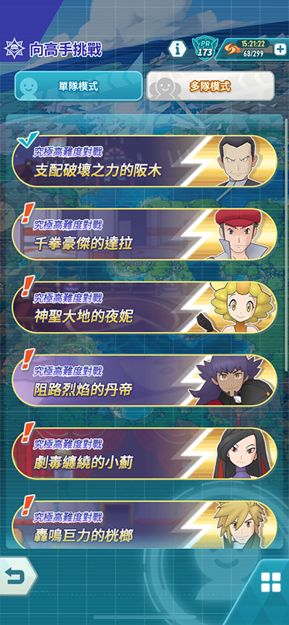 需先通過「NORMAL」難度的「VS 關都」才能挑戰「冠軍之路」和「HARD Lv.1」